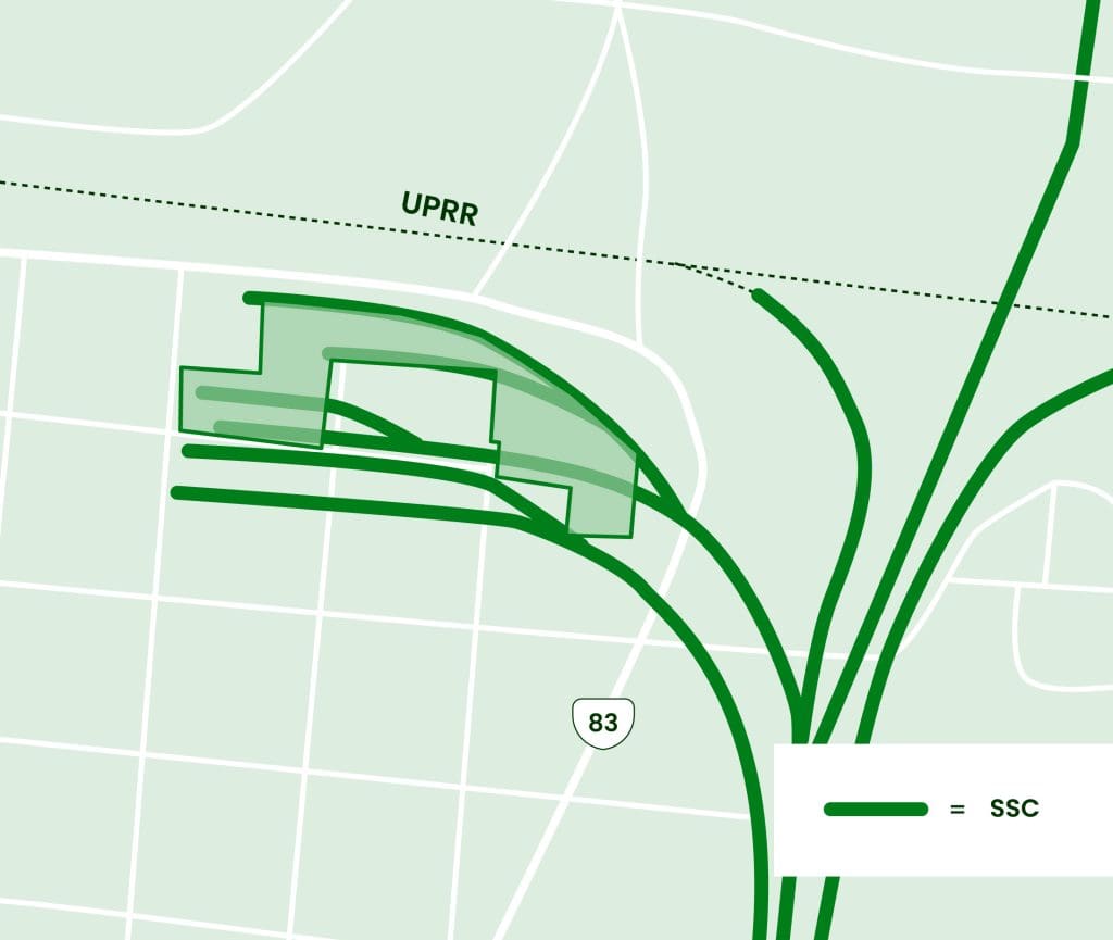 Southern Switching Company (“SSC”) interchanges with the Union Pacific Railroad (“UPRR”) in downtown Abilene, TX and operates 8.5 miles of railroad within the City of Abilene.