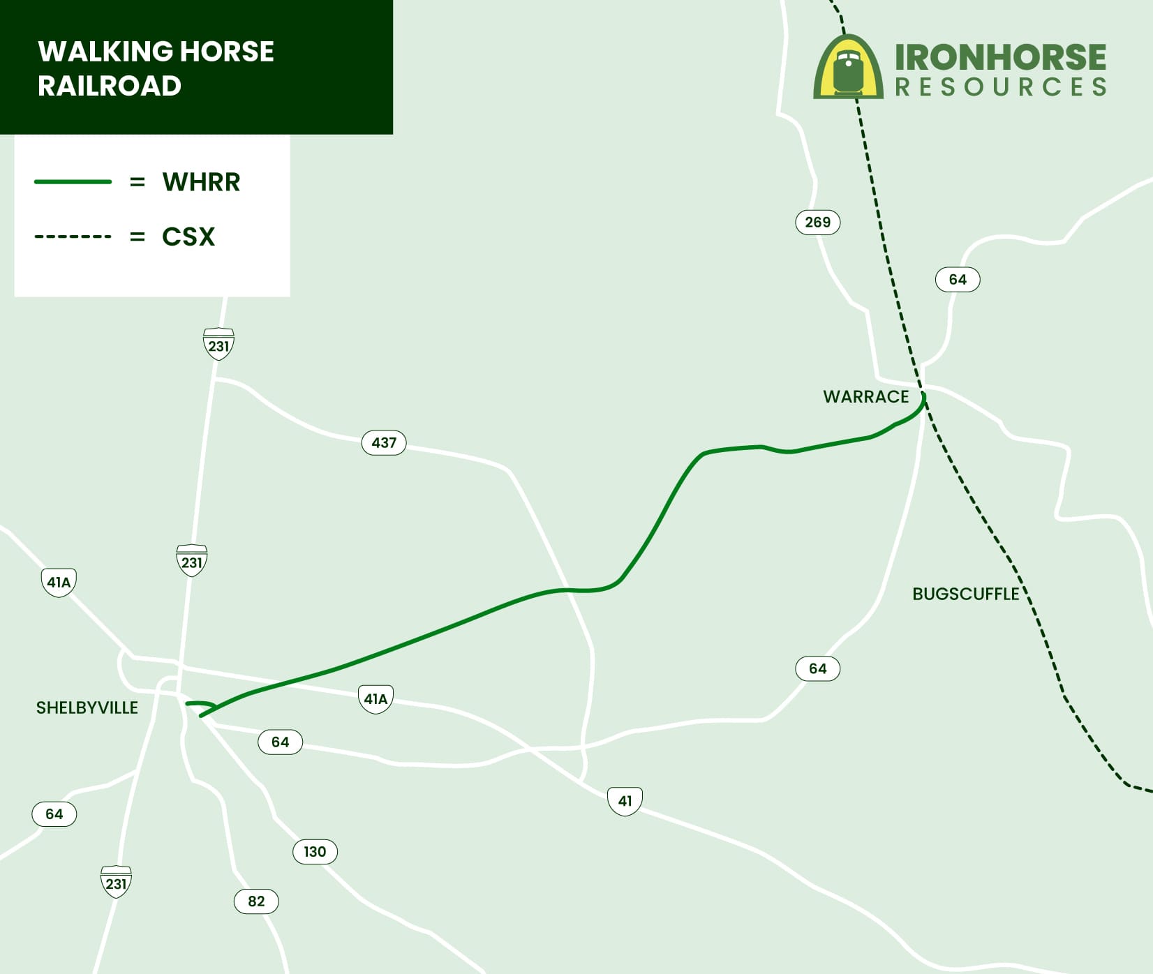 Walking Horse Railroad (“WHRR”) is a short-line railroad that interchanges with CSX in Wartrace, TN and heads West to Shelbyville, TN.